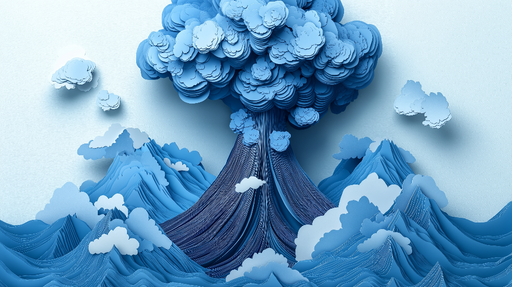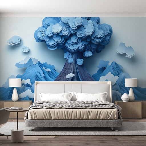 WonderMuralSee kaasahaarav foto tapeet rõhutab mägismaastikku ja stiliseeritud pilvi, mis on loodud hoolikalt kihilisest lõigatud paberist. Erinevad sinise to...