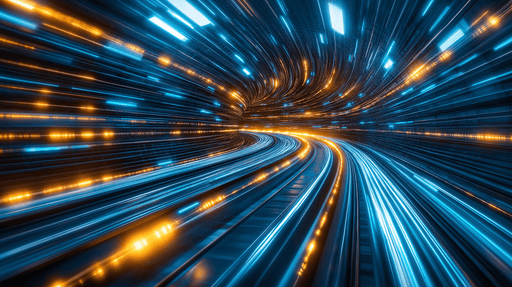 WonderMuralSee kaasahaarav fototapeet sisaldab dünaamilist neoonvalguse mustrit sinises ja oranžis, luues kõrge kiiruse liikumise illusiooni. Voolavad jooned ...