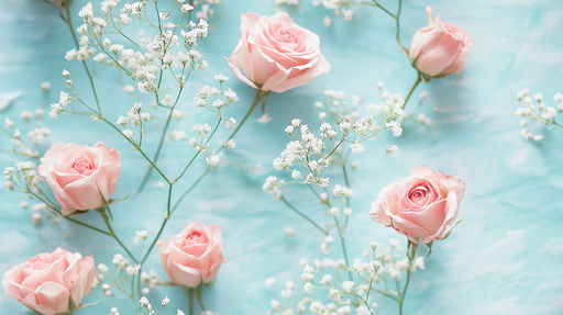 WonderMuralSee elegantne fototapeet omab luksuslikke roosasid roose, mida ümbritsevad õrnad kipslilled, kõik rahustaval helesinisel taustal, mis kutsub esile ...