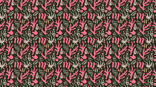 WonderMuralSee lummav Fototapeet omadab julget mustrit värviliste korallide ja lehestikuga, näidates elavaid roosasid, rohelisi ja kuldseid toone sügava musta...
