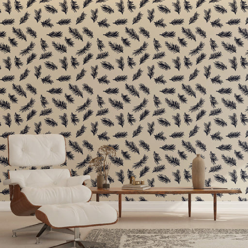 WonderMuralSee tapeet omab võluvat motiivi peenelt joonistatud okaspuu oksad südamiksinisel taustal, mis on harmooniliselt paigutatud pehmele kreemjale tausta...