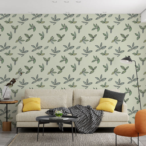 Vaata täielikke üksikasjuMuraalsein delicate foliage | Roheliste lehtede mustrid heledal taustal