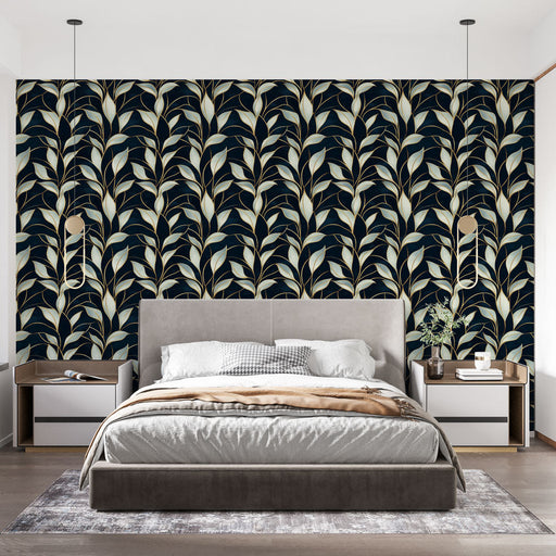 WonderMuralSee tapeet omab elegantset mustrit stiilistatud lehtedest smaragdrohelisel taustal, luues kaasaegse ja rahustava õhkkonna. Lehtede kuldne ja roheli...