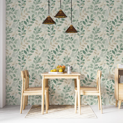 WonderMuralMeie tapeet on võluva mustriga rohelised lehed rahustavates toonides, õrnalt paigutatud hele taustale. Roheliste toonide mitmekesisus koos beežide ...