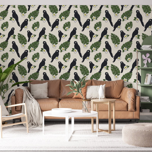 WonderMuralSee elav fototapeet on kaunite mustade lindude või troopiliste lehtede ja õrnade lillede võluv mustriga. Lehtede rohelised toonid sulanduvad ideaal...