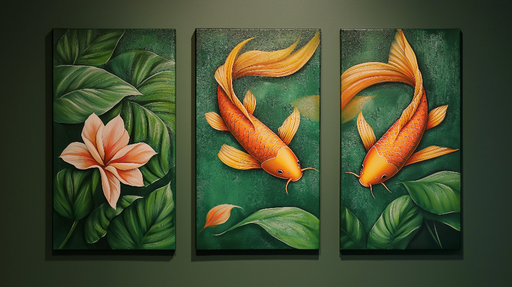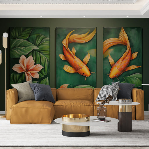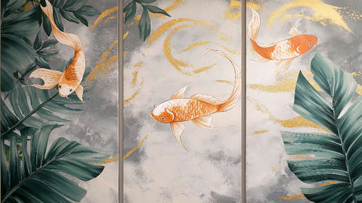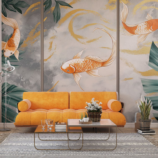 WonderMuralMeie tapeet on kauni maaliga, kus on kuldseid ja erksaid toone koi kala, graatsiliselt ujudes taustal, mis on kaunistatud kuldsete puudutustega ja ...