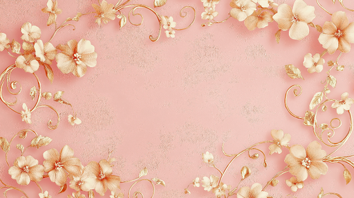 WonderMuralSee vanaaegse šikkusega fototapetil on võluv roosade lillede ja õrnade kuldsete varte muster, luues pehme ja romantilise õhustiku. Pastelse roosa t...