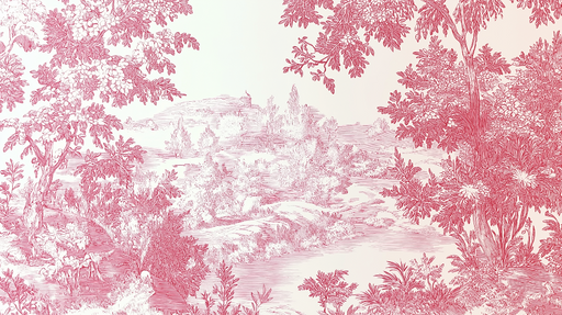 WonderMuralSee shabby chic fototapeet pakub lummavat maastikumustrit hele roosas, kus on õrnad puud ja roheline lehestik. Peened ja detailiderohked jooned loo...