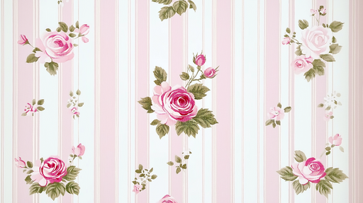 WonderMuralAvasta meie shabby chic fototapetid, kus on kaunis muster roosadest lilledest täies õies, õrnalt paigutatud pastelse triibu taustale. Roosa, iiveld...