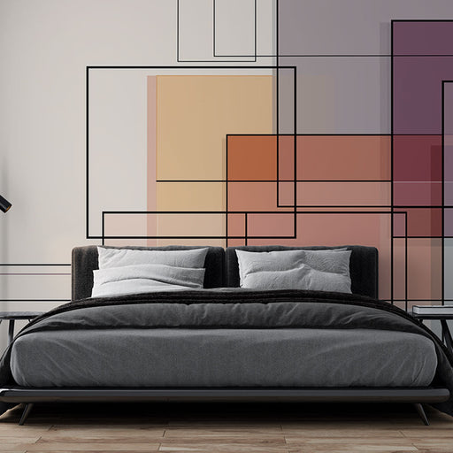 WonderMuralSee tapeet omab lummavat geomeetrilist disaini, kombineerides kattuvaid ristkülikukujulisi kujundeid pehmetes toonides nagu oranž, roosa ja lilla, ...