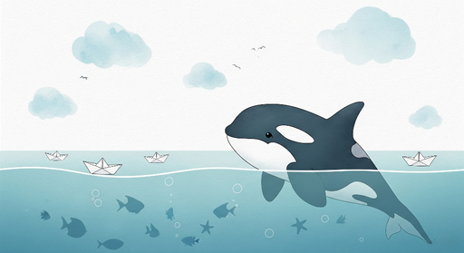 WonderMuralAvastage meie illustratsioonidega seinamaalingut, kus mänguline orca ujub vaikse taeva all, ümbritsetud kergestest pilvedest. Veealune disain koos ...