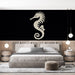 See tagasihoidlik ja stiilne fototapeet toob esile minimalistliku merihobu kreemvalgel taustal, mida elegantne joonistatakse sügavale mustale taustale. Kontrast valguse ja pimeduse vahel loob graafilise ja kaasaegse esteetika, mis on ideaalne puhta ja keeruka sisekujunduse jaoks.