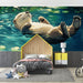 See kaasahaaravat fototapetil on armas naarits, kes ujub rahulikult vees, ümbritsetud vesi-liiliatega ja sillerdavate peegeldustega. Elavad ja rahustavad värvid, sügavast türkiissinist kuni kuldse, loovad rahulikkuse ja rõõmu atmosfääri, mis on ideaalne loodusest inspireeritud sisekujunduse jaoks.