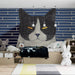 See lummav fototapeet omab stiilitud illustratsiooni kassist julgete omadustega, mis on seatud sinise tellise taustale, lisades kaasaegse ja kunstilise puudutuse. Mustvalgete joonte peened nüansid rõhutavad kassi isiksust, samal ajal kui kuldpruunid silmad toovad kogu pildile sooja ja intrigeeriva mõõtme.