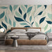 See seinamaalingul on kaasaegne lehemustri, mis kombineerib pehmeid rohelise ja sinise toone, luues rahustava ja kaasaegse õhkkonna. Lehtede vedelad kujundid lisavad visuaalset dünaamikat, samal ajal kui heledad taustad toovad ruumi kergust.