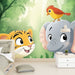 Meie fototapeedil on lõbus tiiger ja rõõmsameelne elevant, keda saadab värvikas lind, kohtudes rohelises džunglis. Erksad värvid ja koomiksilaadsed jooned toovad mängulise ja sooja puudutuse, mis sobib ideaalselt lastetoa või mängualaga.