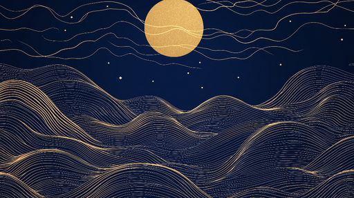 WonderMuralTapettimme herättää rauhoittavan meren kultaisten aaltojen kuvioinnilla keskiyön sinisellä taustalla. Virtaavat viivat symboloivat veden liikettä t...