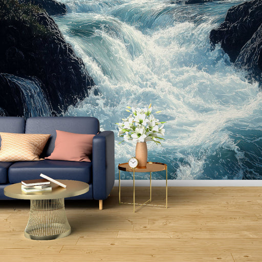 WonderMuralTämä tapetti seinämaalaus esillä dynaaminen meriaalto, vangitseva kauneus ja liike valtameren vedet. Eri sävyjä sininen, vaihtelevat turkoosista ke...