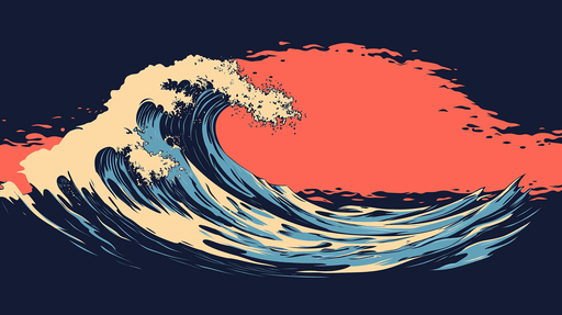 Näytä kaikki tiedotTapetti ocean wave | Suuri tyylitelty aalto sinisen ja korallin sävyissä