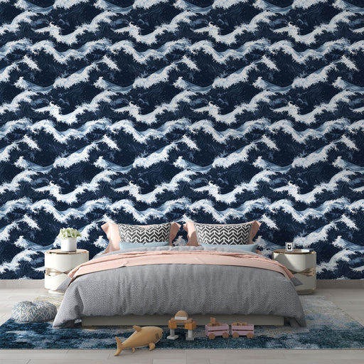 WonderMuralTämä tapetti tarjoaa dynaamisen suunnittelun meriaalloista, joissa tummansiniset sävyt herättävät valtameren syvyydet, valkoisten roiskeiden tehost...