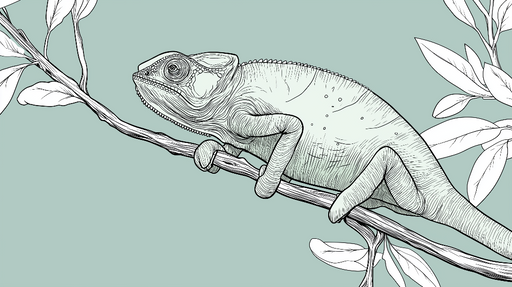 Näytä kaikki tiedotTapetti kameleontti | Mustavalkoinen kuvitus kameleontista oksalla
