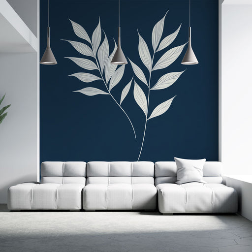 WonderMuralTämä tapetti sisältää tyylikkään kuvion, jossa on valkoisia lehtiä, jotka on piirretty suurella tarkkuudella, erottuen syvästä ja rauhoittavasta si...