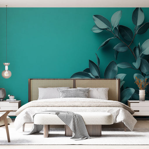 WonderMuralTämä tapetti tarjoaa modernin ja rauhoittavan muotoilun, korostaen suuria turkooseja lehtiä hienovaraisilla yksityiskohdilla ja hienostuneilla teks...