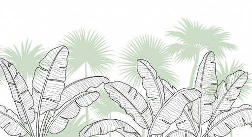 WonderMuralLöydä elegantti trooppinen tapettimme, jossa on ylellisiä banaaninlehtiä, jotka on piirretty hienoilla viivoilla, ja herkkä vihreän sävyinen tausta...