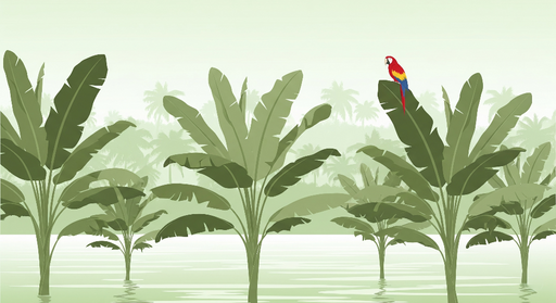 WonderMuralYksinomainen Tapettiomme tarjoaa rohkean trooppisen suunnittelun, jossa on stilisoituja banaanilehtiä ja upea lentävä papukaija. Hienovaraisen ja e...