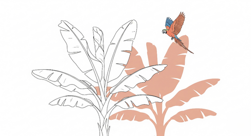 Näytä kaikki tiedotTapetti trooppinen | Banaaninlehdet ja värikäs papukaija rauhoittavalla taustalla