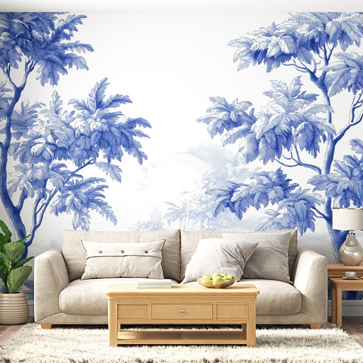 WonderMuralTämä tapetti sisältää herkän tropiikin kuvion, joka esittelee lehtivihreitä sinisissä sävyissä kirkkaalla valkoisella taustalla. Lehtien ja puun ru...