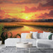 Tämä tapetti muistuttaa loistavaa auringonlaskua kultaisen riisipeltojen yllä, luoden rauhallisen ja tyynen ilmapiirin. Keltaisen, oranssin ja vaaleanpunaisen sävyt sulautuvat valaisemaan maisemaa, kun taas auringon heijastus vedessä lisää taianomaista tunnelmaa.