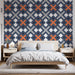 Tuo nykyaikainen kosketus sisustukseesi meidän geometrisellä tapetilla, jossa on ristikkäiset ristikkokuvioinnit. Tämä suunnittelu esittelee ristikkäiset ristit sinisen, oranssin ja harmaan sävyissä valkoisella taustalla, luoden silmiinpistävän ja modernin visuaalisen vaikutuksen.