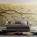 Tapetti jäljitelmämaalaus | Herkät oksat ja kohokuvioitu lehvistö beigeällä taustalla