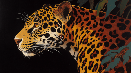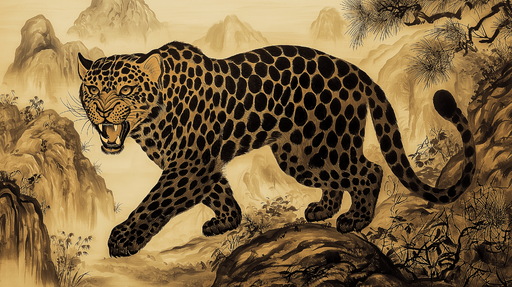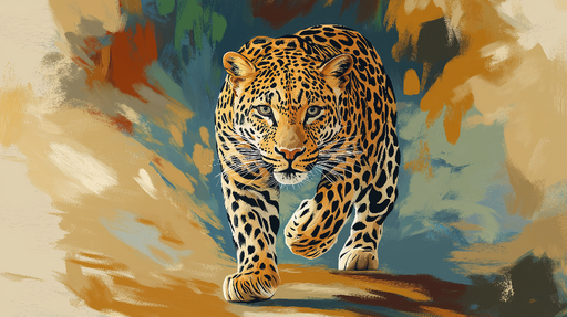 Näytä kaikki tiedotTapetti leopardi | Taiteellinen esitys majesteettisesta leopardista stilisoituneessa maisemassa