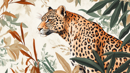 WonderMuralTämä tapetti korostaa mahtavaa leopardia, joka on ympäröity hienostuneella kasvustolla pehmeissä ja luonnollisissa sävyissä. Lämmin ja maanläheinen...