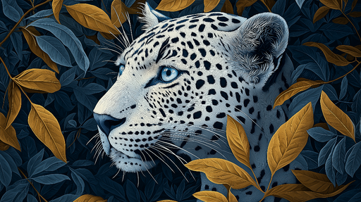 WonderMuralTämä lumoava tapetti esittää leopardin muotokuvaa lävistävillä silmillä, ympäröitynä syvän sinisillä ja kultaisilla lehdillä. Tämä mahtavan eläimen...