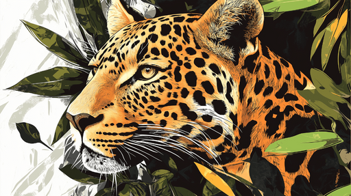 WonderMuralTämä lumoava tapetti esittelee leopardin pään, joka nousee sulavasti rehevästä kasvillisuudesta. Leopardin eloisat oranssin ja mustan sävyt kontras...
