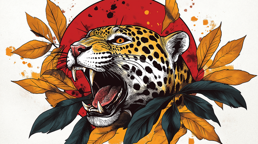 WonderMuralTämä tapetti kuvastaa luonnon voimaa ja kauneutta sen vaikuttavalla kuvituksella karjuvasta leopardista, jota korostavat lämpimät oranssin ja vihre...