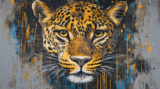 WonderMuralTämä iskevä tapetti korostaa karjuvan leopardin päätä, joka on koristeltu kultaisilla ja mustilla roiskeilla, jotka tuovat dynaamisen ja rohkean ko...