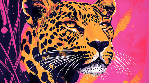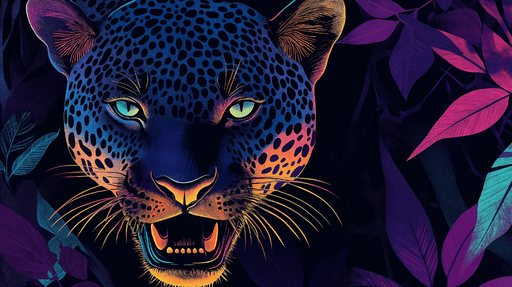 WonderMuralTämä lumoava tapetti esittelee kauniisti kuvitetun leopardipään, jossa on dynaaminen sekoitus kirkkaita värejä tummalla taustalla. Leopardin pilkul...