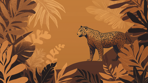 WonderMuralTutustu tapettiimme, joka korostaa ylpeänä seisovaa eleganttia leopardia, jota ympäröi rehevä kasvillisuus lämpimissä, maanläheisissä sävyissä. Tro...