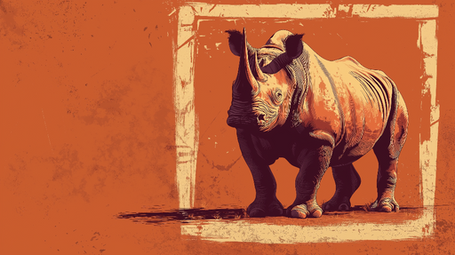 Tämä tapetti esittelee majesteettisen sarvikuonon, joka on tyylitelty geometrisilla muodoilla tuomaan modernia ilmettä sisustukseesi. Vihreän, harmaan ja beigen sävyt sulautuvat harmonisesti yhteen luoden vangitsevan visuaalisen efektin, joka kiinnittää huomion. Hienovarainen kultainen tausta lisää lämpöä, korostaen tämän suunnittelun ainutlaatuista luonnetta.