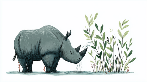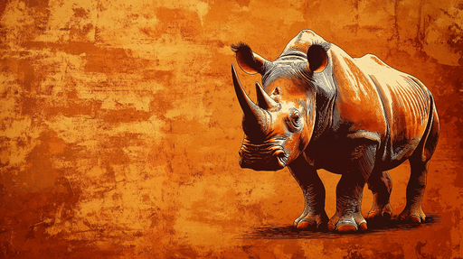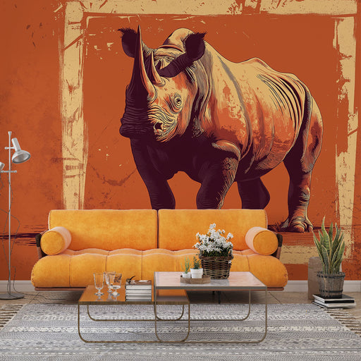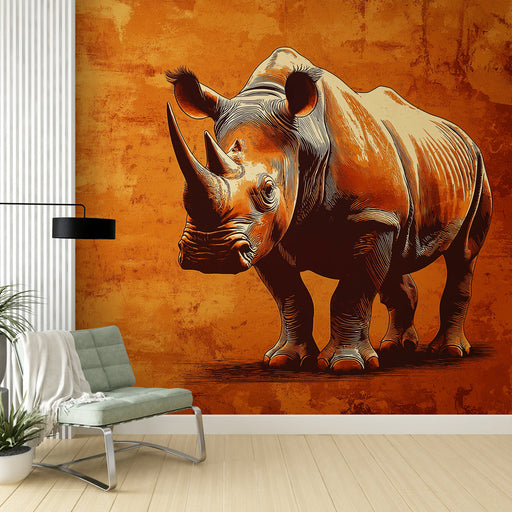 Tapetti jäljitelmämaalaus | Taiteellinen kuvitus sarvikuonon muodossa maanläheisillä sävyillä