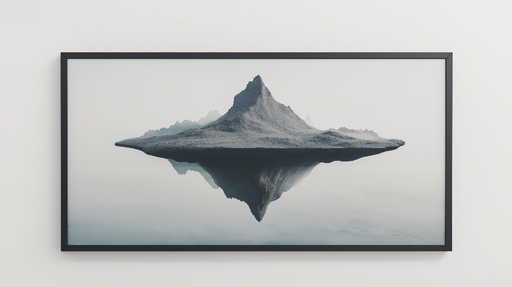 WonderMuralMeidän tapettimme esittelee kelluvan vuoren, jota ympäröi minimalistinen maisema, nähtynä lempeän heijastuksen kautta tyynellä vedenpinnalla. Monok...