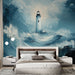 Tämä seinätapetti kuvaa vaikuttavaa majakkaa, joka nousee myrskyisestä merestä, ympäröitynä syvän sinisen ja taivaallisten sävyjen kirjolla. Myrskyisesti kuvatut aallot luovat dynaamisen mutta rauhallisen ilmapiirin, tuoden seikkailun ja rauhan tuntua mihin tahansa tilaan.