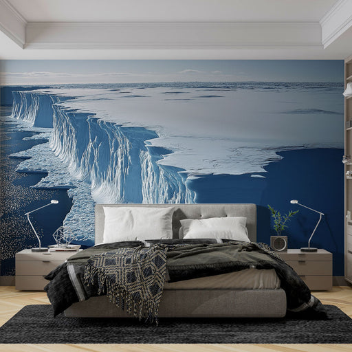 WonderMuralTämä tapettimaisema kuvaa vaikuttavaa jäätikkömaisemaa, jossa kohoavat jäävuoret kohoavat tyynen veden yläpuolelle. Vaalean ja syvän sinisen sävyt ...