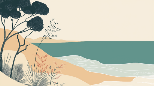 Näytä kaikki tiedotTapetti merimaisema | Rauhallinen rantanäkymä taiteellisella kasvillisuudella