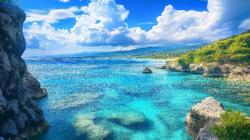 WonderMuralTämä ylevä tapetti vangitsee henkeäsalpaavan merimaiseman olemuksen, jossa turkoosit vedet sulautuvat harmonisesti pilvien täplittämään siniseen ta...
