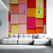 Tämä lumoava tapetti tarjoaa kuvion värikkäistä neliöistä, jotka herättävät elävän mosaiikin, täynnä eloisia sävyjä kuten pinkkiä, keltaista, oranssia ja punaista. Vaihtelevat sävyt luovat dynaamisen ja kutsuvan vaikutelman, tuoden elinvoimaa sisustukseesi.